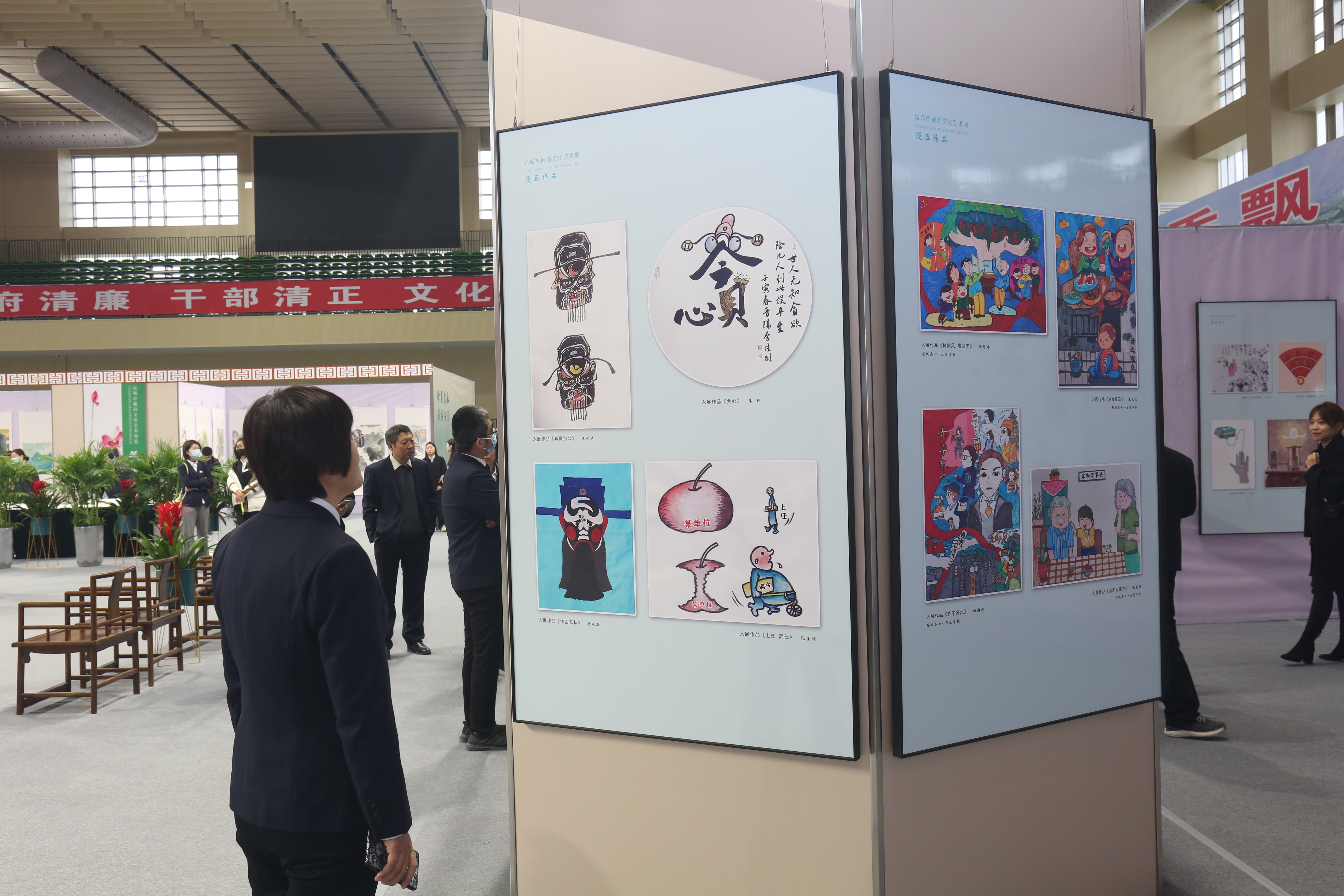 展覽現(xiàn)場,一幅幅濃墨重彩的作品,一件件主題鮮明的字畫,一張張精妙絕倫的剪紙……從不同角度、以多種形式歌浩然正氣、頌清廉新風、斥慵懶之氣,充分展現(xiàn)了全市干部群眾崇廉尚廉的良好風貌。