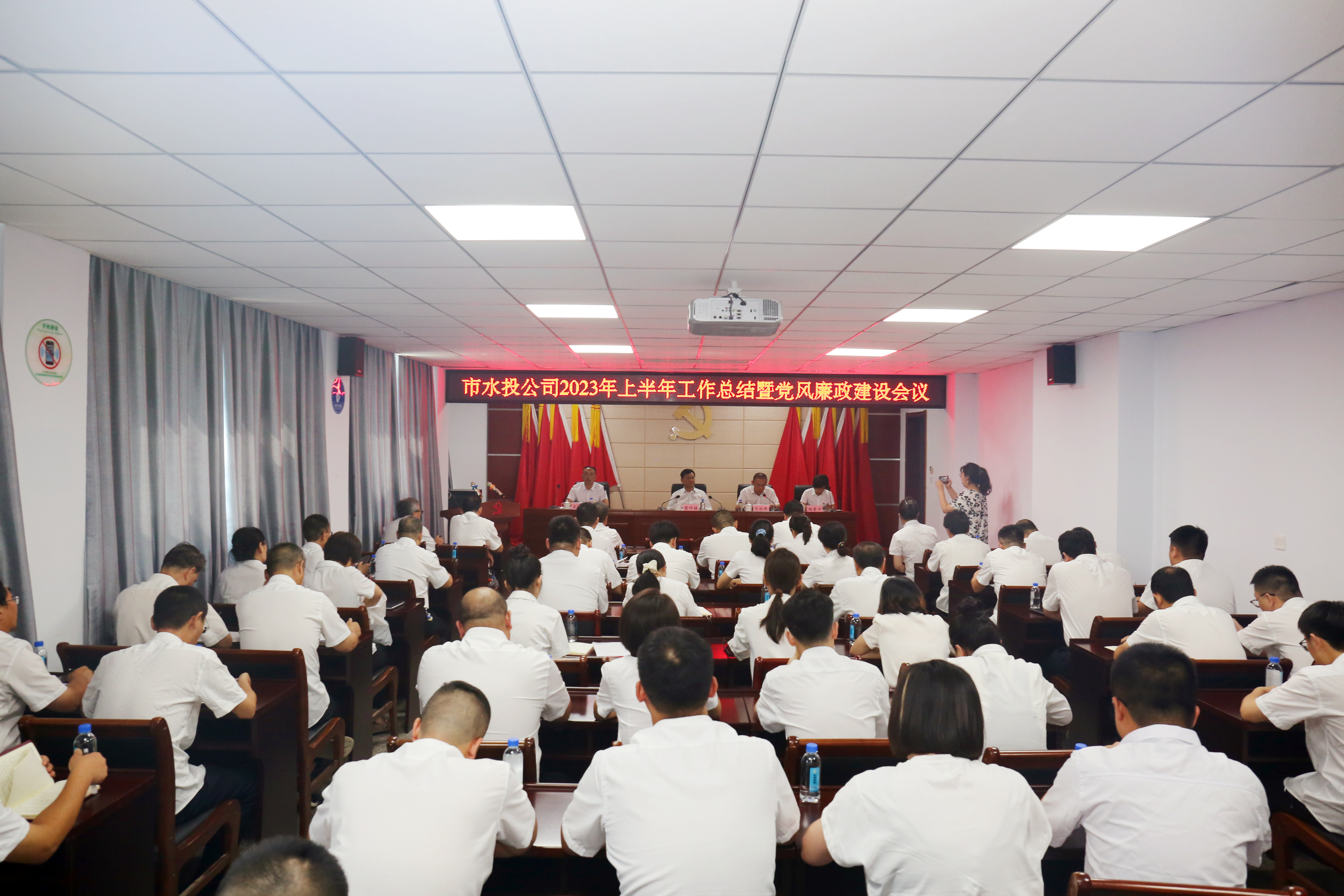 為動員公司廣大黨員干部群眾凝聚共識、知責奮進,奮力推進公司高質量發(fā)展取得新成效,8月1日下午,市水投公司召開2023年上半年工作總結暨黨風廉政建設工作會議,全面總結回顧上半年工作情況,深入分析當前存在的突出問題和短板弱項,安排部署下半年黨風廉政建設工作和重點業(yè)務工作。市水投公司黨委書記、董事長崔作銘出席會議并講話,黨委委員、副總經理范永勝主持會議,公司領導班子成員、各子公司班子成員、機關全體員工參加會議。