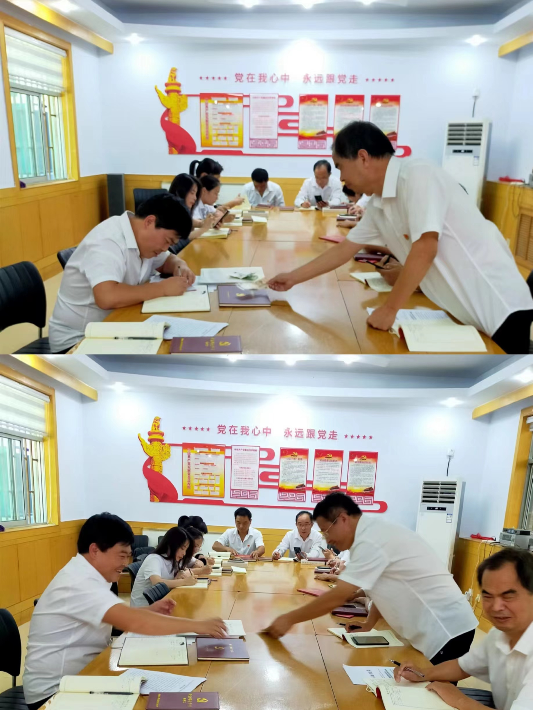 會前,全體黨員逐個向支部繳納了本月黨費,并進行了黨費收繳臺賬登記。