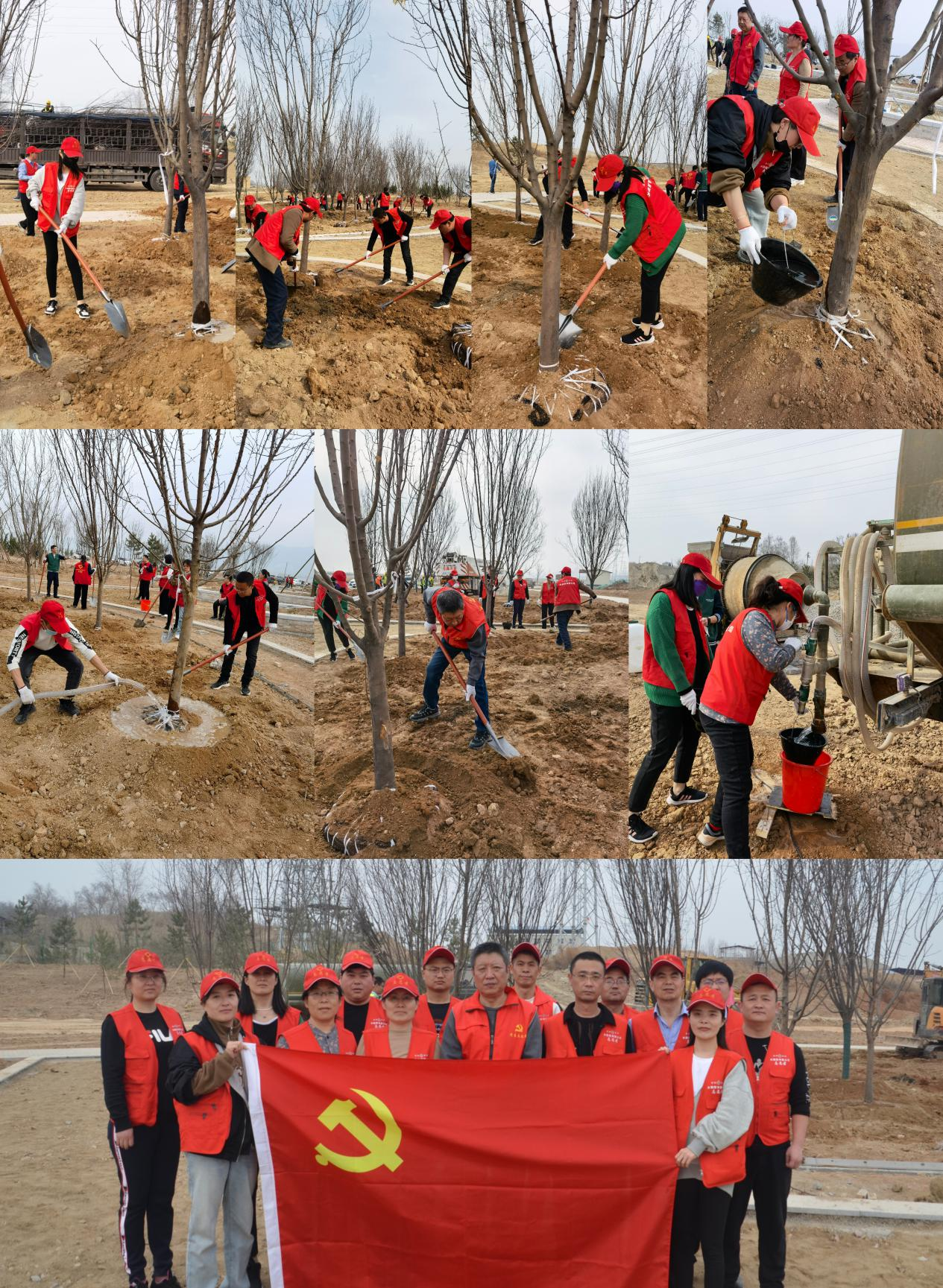 會后,為弘揚雷鋒精神,組織黨員于3月7日下午赴鴨子池水生態(tài)工程項目現(xiàn)場開展“植樹添綠  黨旗增輝”義務(wù)植樹活動。