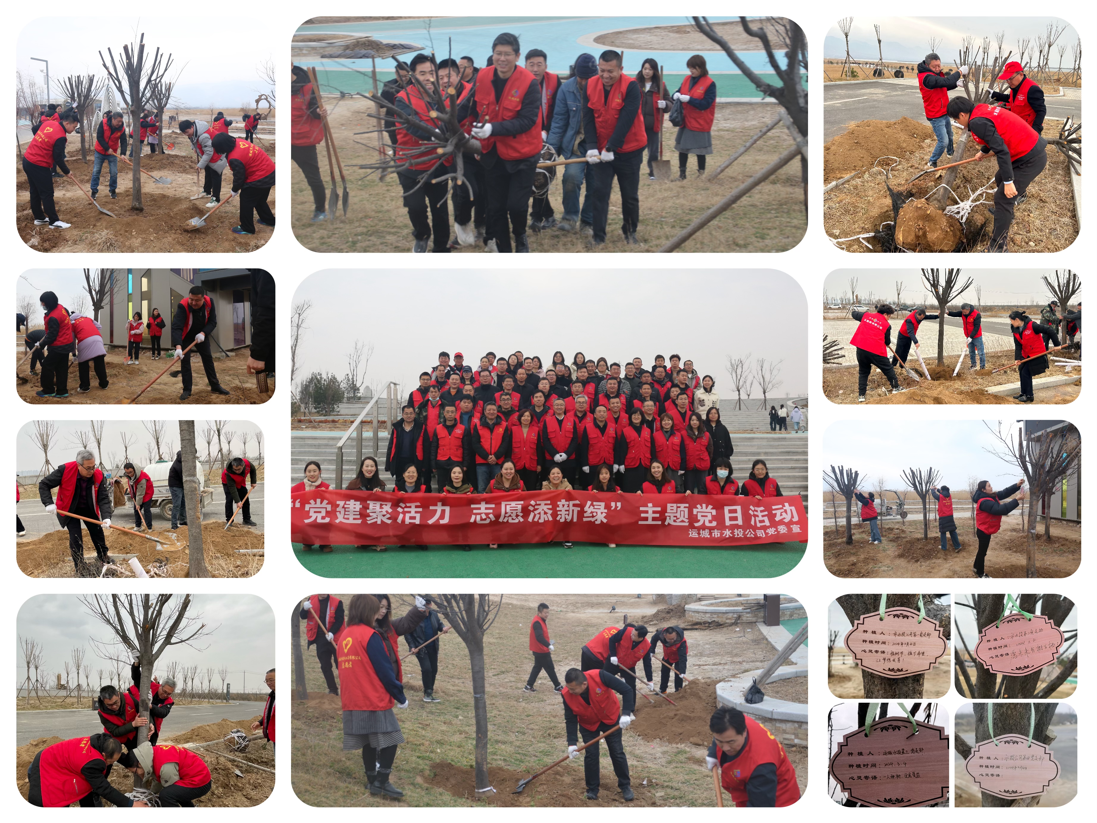 陽春三月,萬木爭春。為深入學(xué)習(xí)宣傳貫徹黨的二十大精神,認(rèn)真踐行習(xí)近平生態(tài)文明思想,大力弘揚(yáng)雷鋒精神,公司組織全體黨員前往鴨子池項目開展義務(wù)植樹活動。參加植樹的各支部黨員們熱情高漲、干勁十足,大家并肩奮戰(zhàn),挖坑、扶苗、培土、澆水……分工明確、配合默契。經(jīng)過辛勤的勞作,一棵棵新栽的小樹昂然挺立,煥發(fā)出勃勃生機(jī),黨員們還親手寫下對小樹的寄語和祝福。此次植樹活動,有效營造了“愛綠、植綠、護(hù)綠”的良好氛圍,為河?xùn)|大地增添了新的生機(jī)和活力。