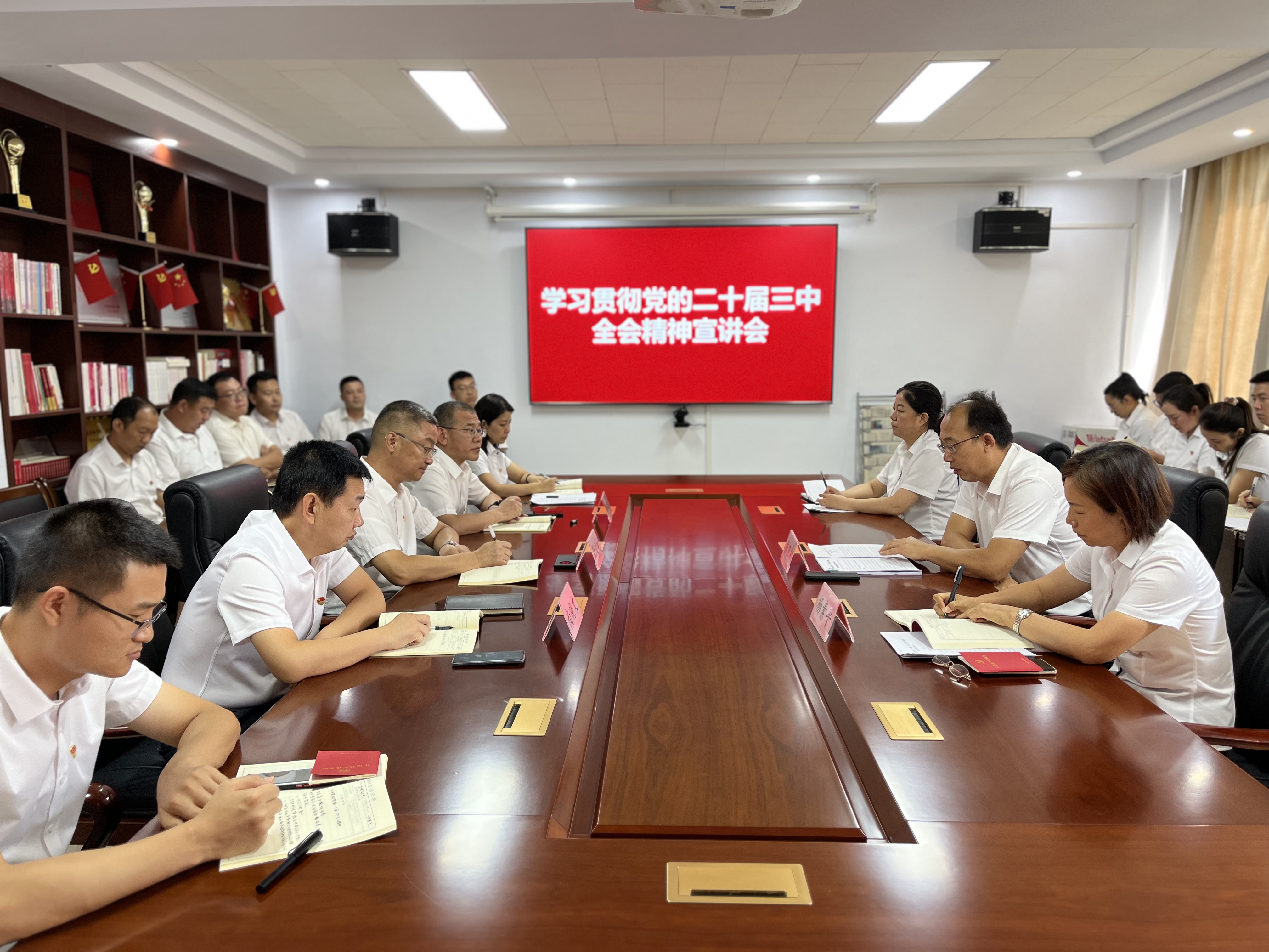 根據(jù)上級黨委工作安排,市工信局(市國資委)黨組成員(黨委委員)、市紀委監(jiān)委派駐市工信局紀檢監(jiān)察組組長張衛(wèi)宏到公司對機關全體黨員開展學習貫徹黨的二十屆三中全會精神宣講會。黨的二十屆三中全會對深化國資國企改革進一步作出重大部署,張組長以此為切入點對全會精神的核心要義和精神實質進行了深入淺出的宣講,對公司下一步發(fā)展提出七點建議,要求領導班子成員及全體黨員要以學習貫徹習近平總書記關于國有企業(yè)改革發(fā)展和黨的建設的重要論述精神為統(tǒng)領,把好方向、守正創(chuàng)新,將學習貫徹落實二十屆三中全會精神與公司實際緊密結合,切實做到學思用貫通、知信行統(tǒng)一。