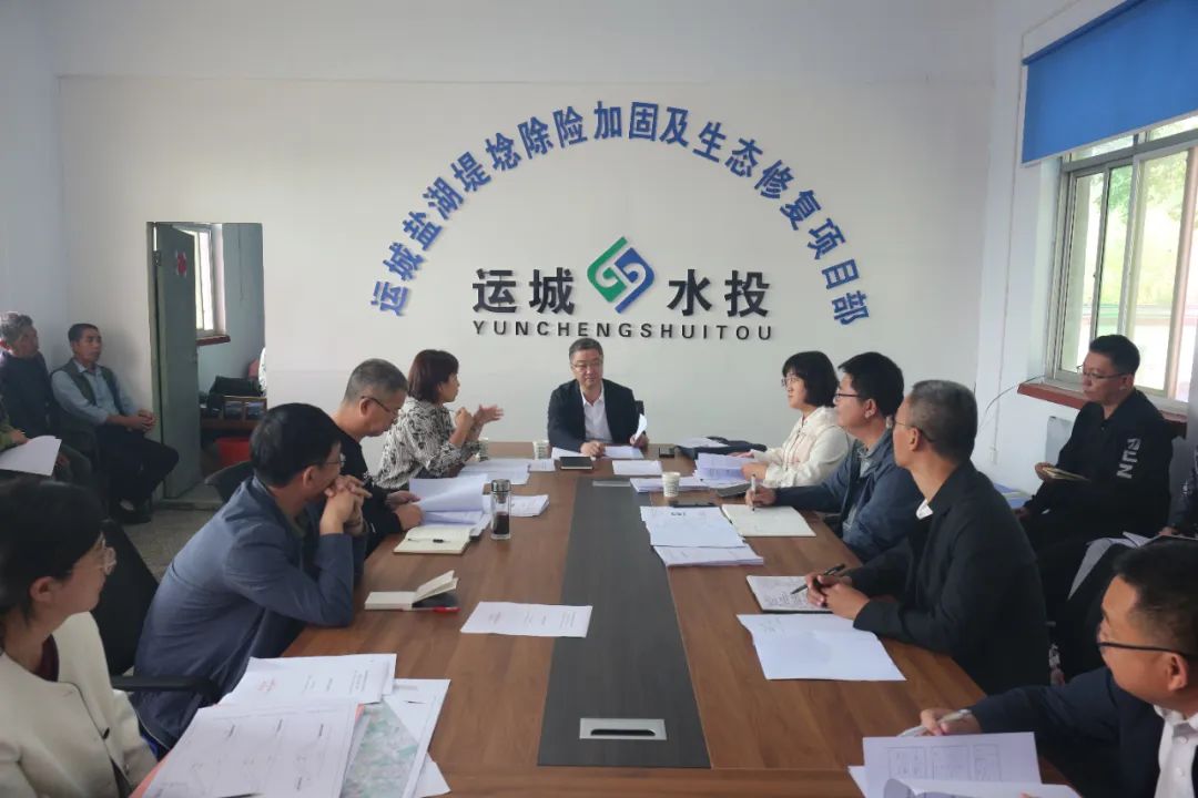 2024年10月8日,市水投公司在鹽湖堤埝生態(tài)修復(fù)項目部會議室召開一期、二期工作推進會。公司董事長薛文兵、副總經(jīng)理楊素平、項目部全體人員及監(jiān)理單位、設(shè)計單位、施工單位相關(guān)負責人40余人參會。