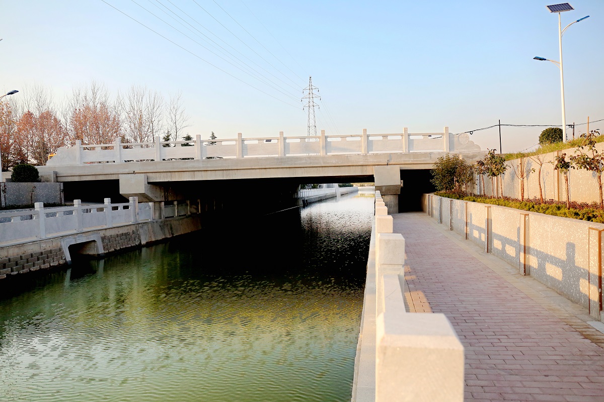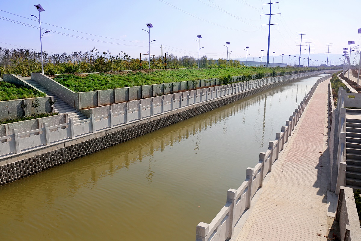 該項目全長4.4公里,總投資1.34億元,主要建設(shè)內(nèi)容:渠道整修改造4.4km,新建和改造原污水管道4.3km,渠岸景觀綠化7.4萬㎡,橋梁拆建7座,擋水堰6座,同時增加了護欄、人行步道和照明設(shè)施。該項目于2017年10月份開工建設(shè),2020年竣工驗收進入運營階段。