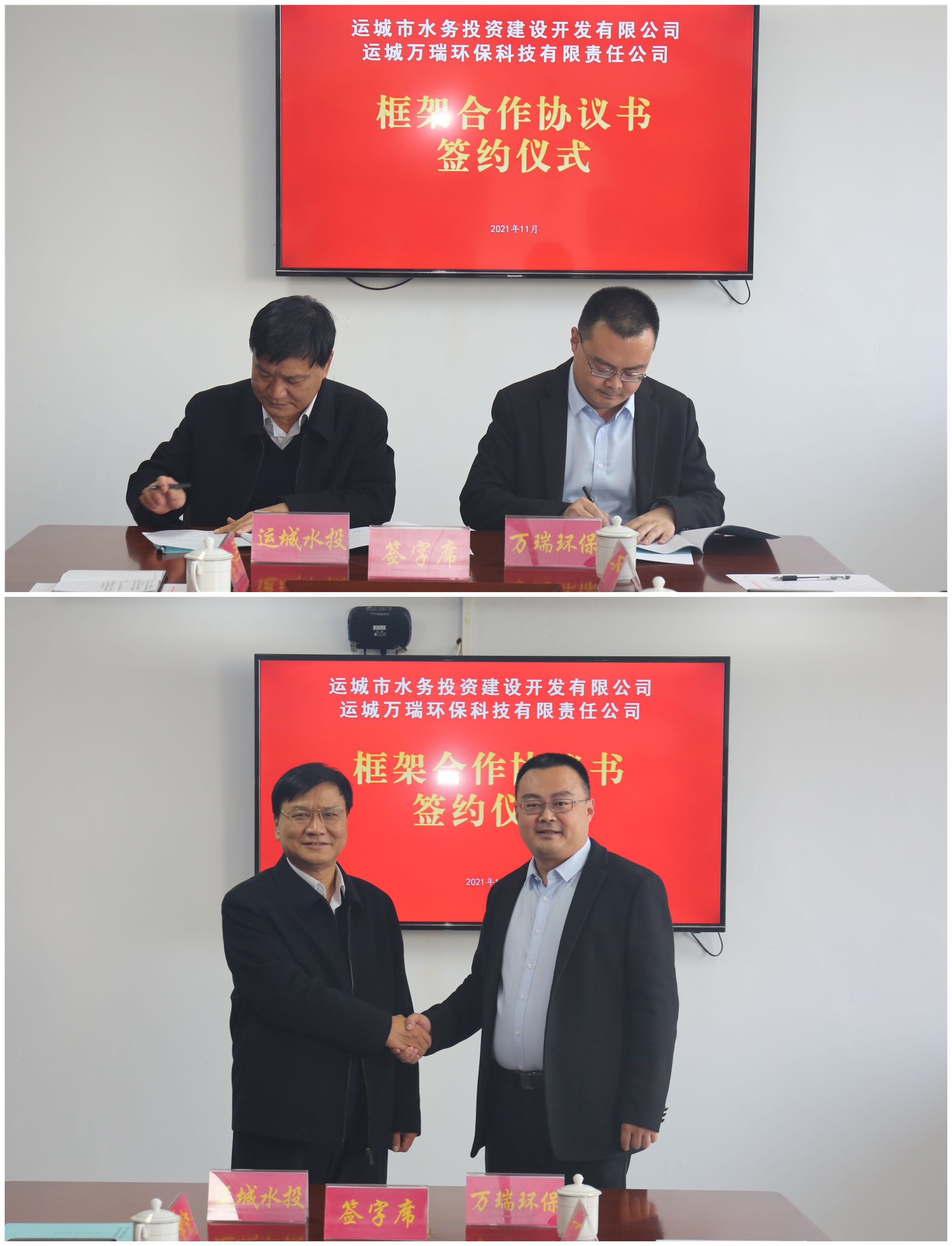11月5日,運城市水務(wù)投資建設(shè)開發(fā)有限公司(以下簡稱市水投公司)與運城萬瑞環(huán)保科技有限責(zé)任公司(以下簡稱萬瑞環(huán)保公司)框架合作協(xié)議簽約儀式,在市水投公司隆重舉行。