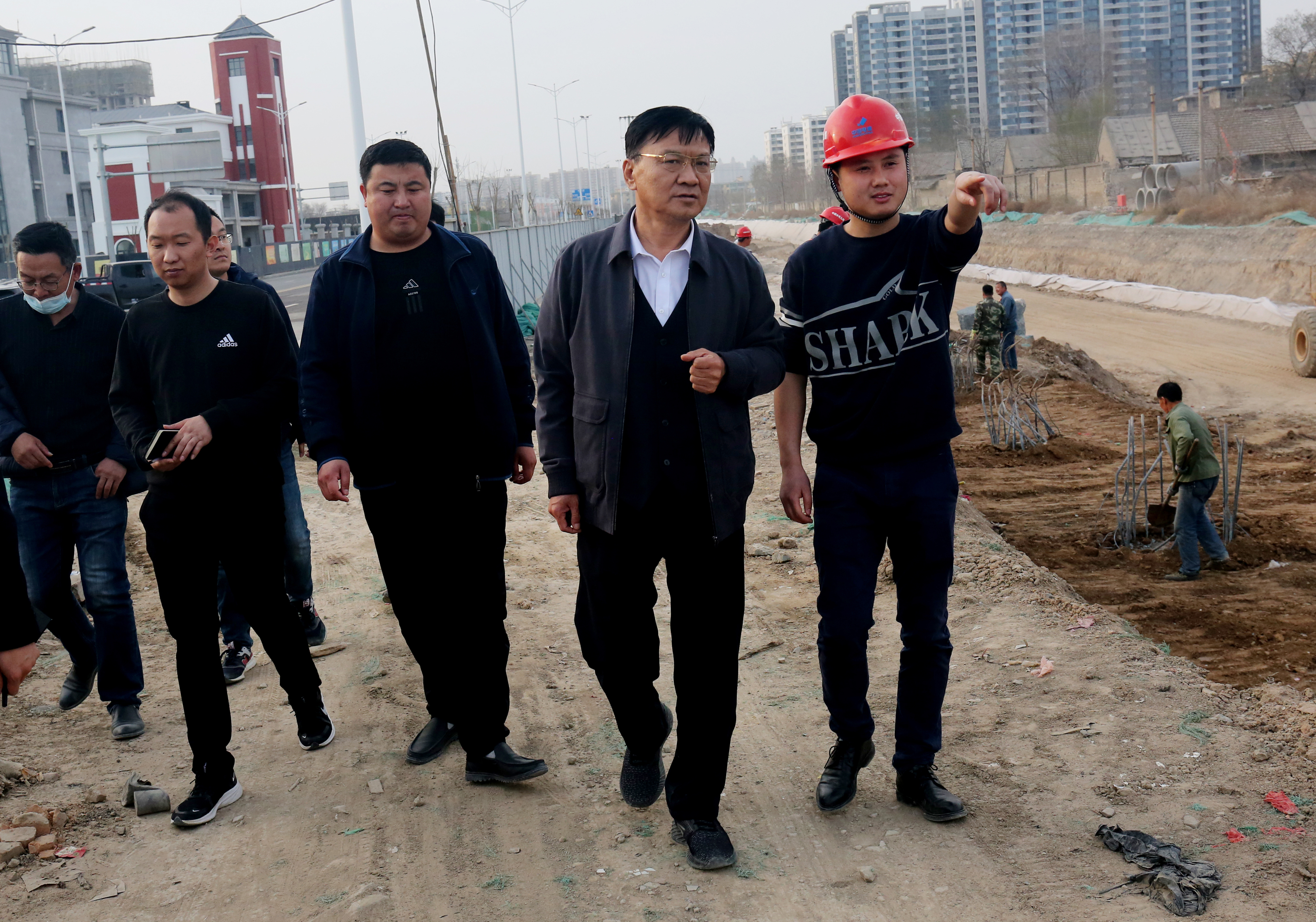 董事長(zhǎng)崔作銘在施工現(xiàn)場(chǎng)查看了施工情況,詳細(xì)詢問(wèn)了目前的施工進(jìn)度后,他要求:要抓緊目前的施工黃金期,倒排工期,全力以赴趕進(jìn)度,確保工程保質(zhì)保量如期完工。