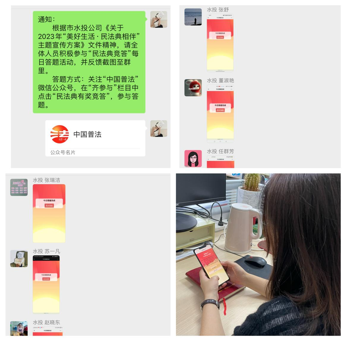 根據(jù)市水投公司《關(guān)于2023年“美好生活·民法典相伴”主題宣傳方案》文件精神,我公司高度重視,堅(jiān)持以習(xí)近平新時(shí)代中國特色社會(huì)主義思想為指導(dǎo),深入學(xué)習(xí)貫徹習(xí)近平法治思想,落實(shí)省市關(guān)于“美好生活·民法典相伴”主題宣傳活動(dòng),做好《民法典》學(xué)習(xí)宣傳工作,引導(dǎo) 廣大干部群眾養(yǎng)成自覺學(xué)法守法意識(shí),培養(yǎng)解決問題靠法的意識(shí)和能力。