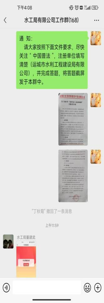 為加大《民法典》宣傳,努力讓每一名干部職工走進(jìn)民法典、了解民法典、運(yùn)用民法典,切實(shí)增強(qiáng)廣大干部職工的法治意識(shí)和法治信仰,5月29日運(yùn)城市水利工程建設(shè)局有限公司組織干部職工開展2023年“美好生活•民法典相伴”主題活動(dòng)?;顒?dòng)現(xiàn)場(chǎng)傳達(dá)了運(yùn)城市水務(wù)投資建設(shè)開發(fā)有限公司《關(guān)于2023年“美好生活•民法典相伴”主題宣傳方案》,并向大家介紹了民法典的重要意義?;顒?dòng)中干部職工積極關(guān)注“中國普法”,注冊(cè)賬號(hào)并進(jìn)行了答題。此次活動(dòng)激發(fā)干部職工主動(dòng)學(xué)習(xí)法律知識(shí),增強(qiáng)了用法治思維和法治方式解決問題的能力。