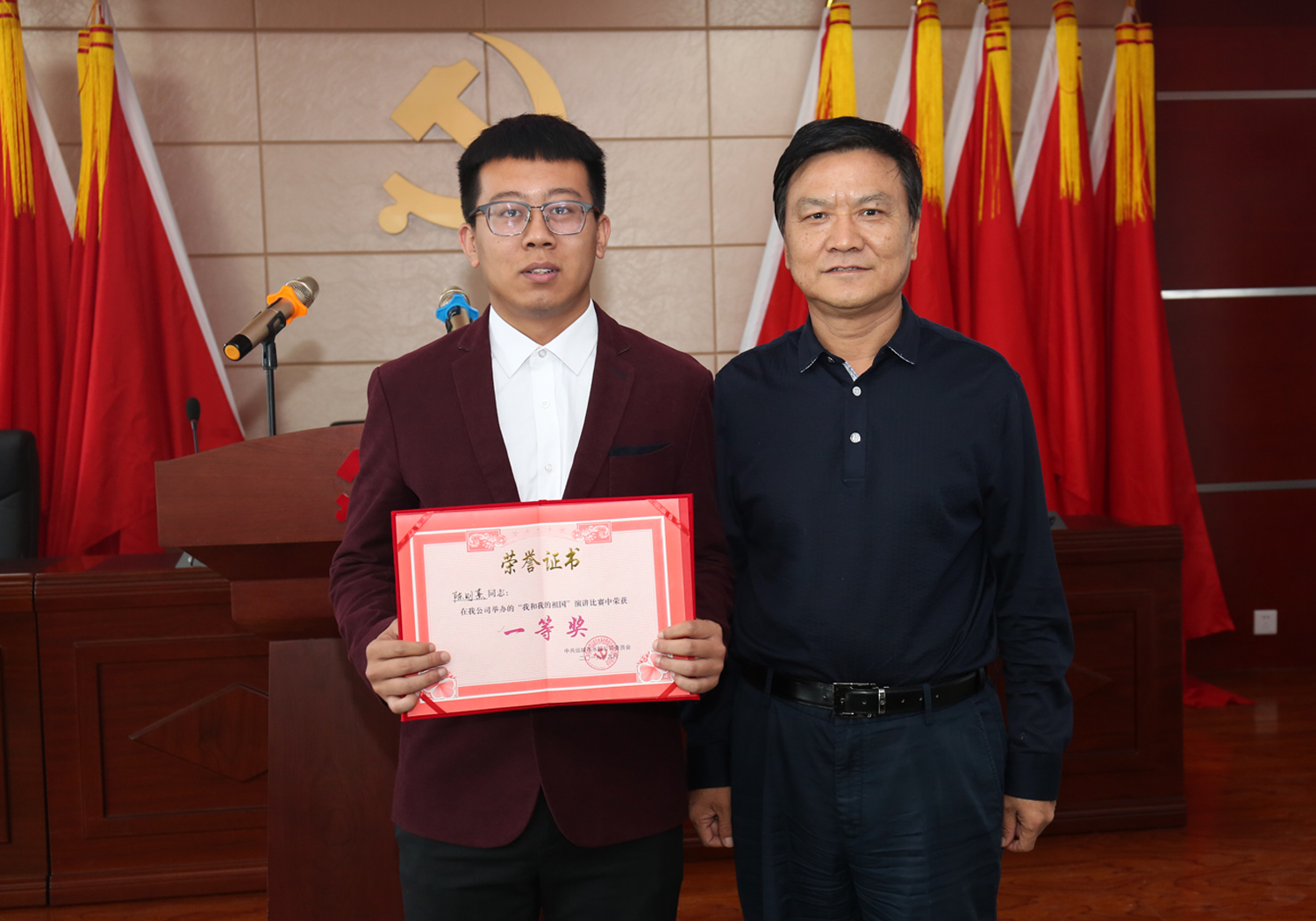 來自公司及各下屬單位的六名選手,圍繞“我和我的祖國”這一鮮明主題,用飽滿熱情的態(tài)度、富有激情的聲音,為大家呈現(xiàn)了一場精妙絕倫的視聽盛宴。選手們從愛崗敬業(yè)、增強(qiáng)自信、放飛夢想等方面謳歌贊美我們偉大的祖國,各有側(cè)重、立場獨到,妙語連珠、聲情并茂、繪聲繪色的演講風(fēng)格,不僅表明了水投人對工作的熱忱,更表達(dá)了對祖國母親的深情與感恩,現(xiàn)場的熱情被歡樂和榮耀一次次點燃。本次演講比賽采取評委現(xiàn)場打分、現(xiàn)場宣布結(jié)果的形式,按照演講內(nèi)容、演講技巧、演講效果等進(jìn)行綜合評分。經(jīng)過激烈的角逐,最終評出一等獎一名,二等獎兩名,優(yōu)秀獎三名,公司領(lǐng)導(dǎo)班子成員向選手們頒發(fā)了獲獎證書。