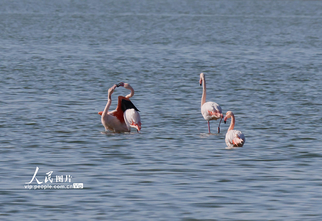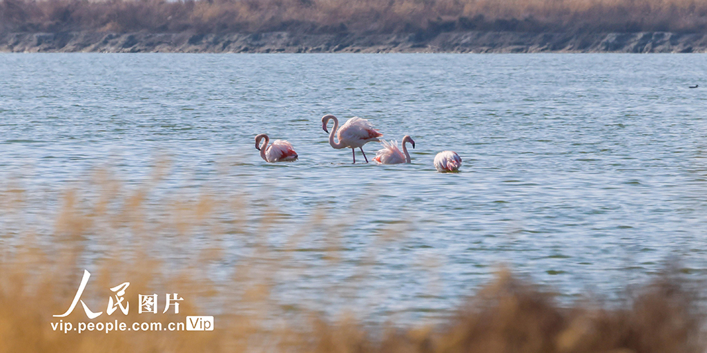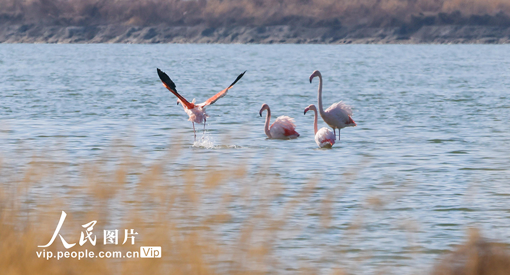 初冬時(shí)節(jié),野生火烈鳥飛抵山西運(yùn)城鹽湖,開啟棲息越冬之旅。